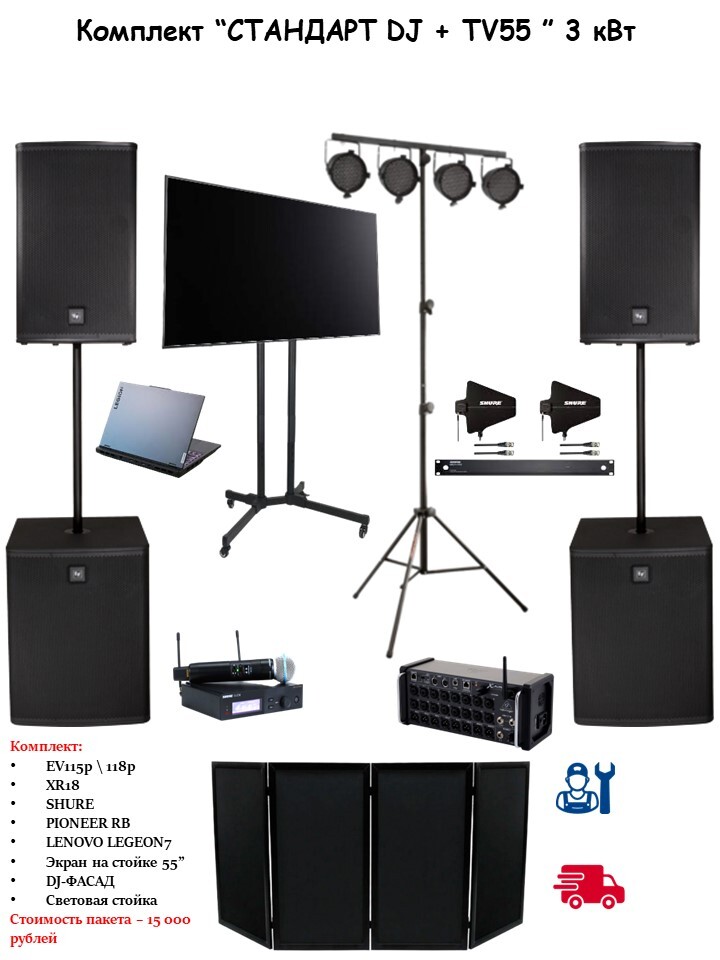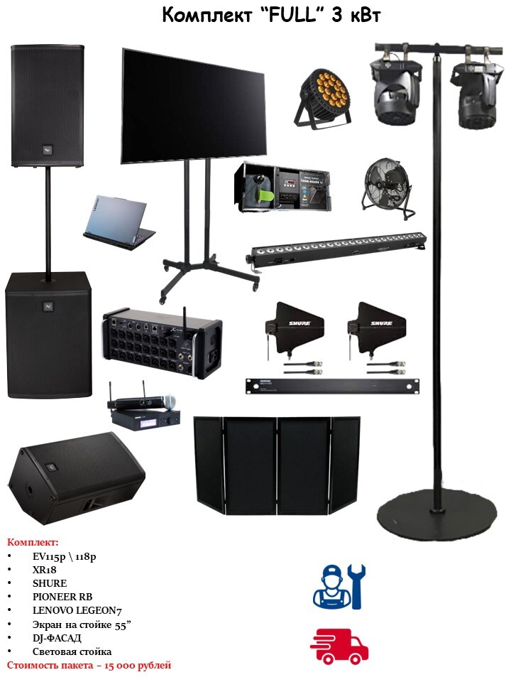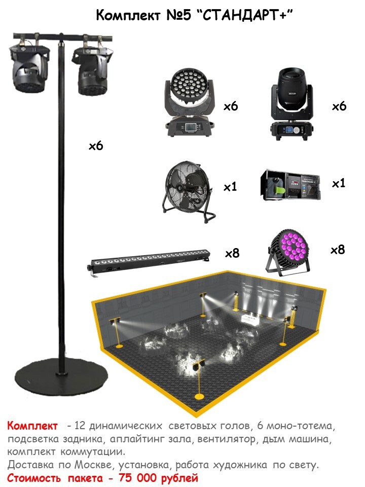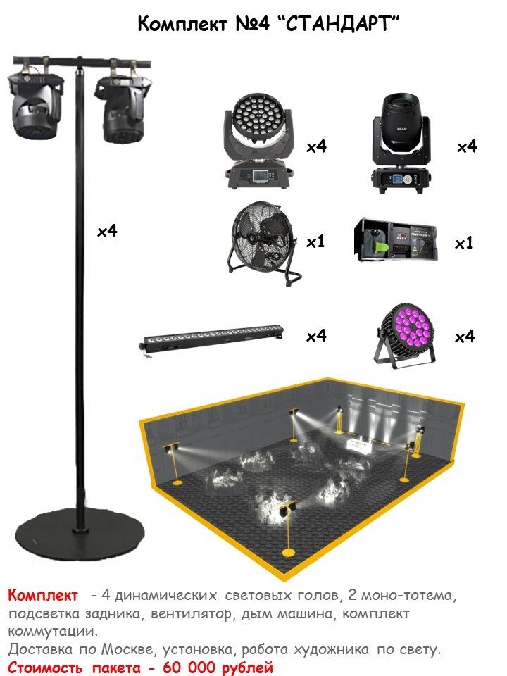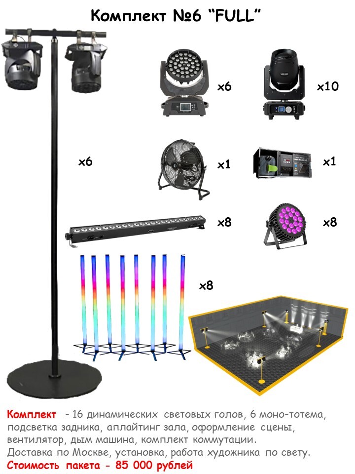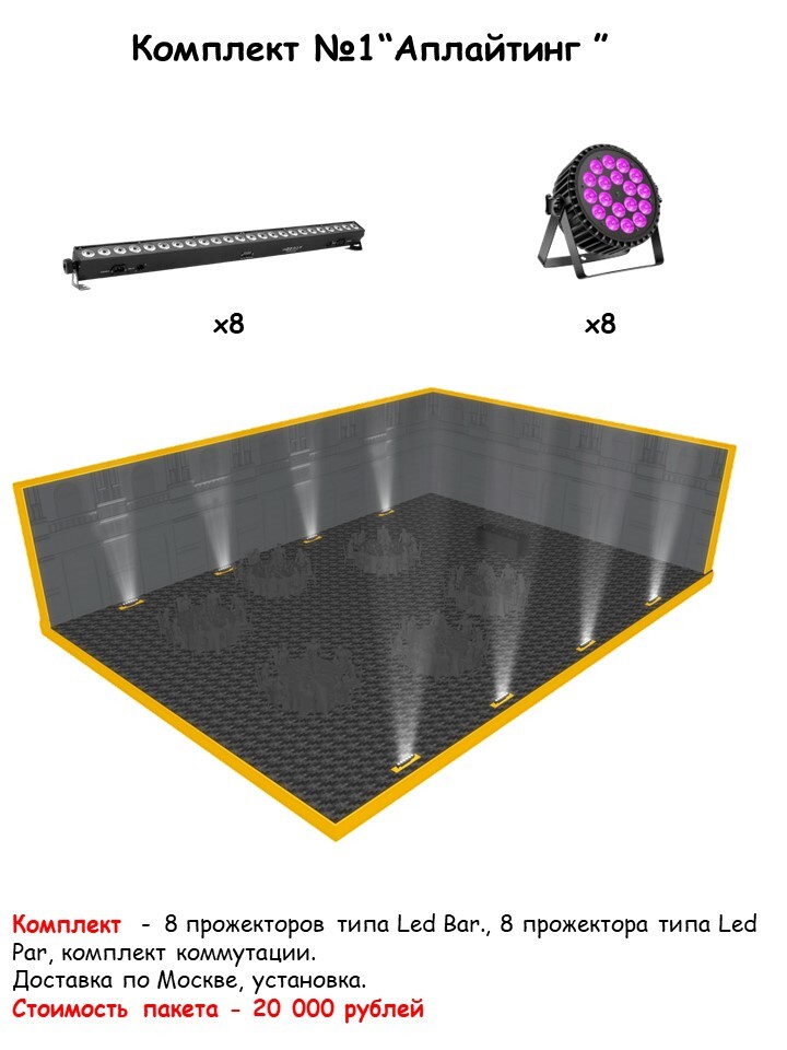 Комплект № 1 "Аплайтинг" 16 приборов Подходит для подсветки шатра ,президиума ,фотозоны! 1️⃣ Световой прибор LED BAR 24x4w- 8шт. 2️⃣ Световой прибор LED PAR - 8шт. 3️⃣ Монтаж/демонтаж 4️⃣Доставка по Москве
